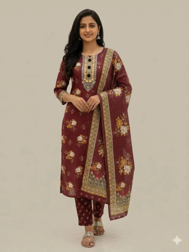 3 Pcs Women's Unstitched Embroidered Suit