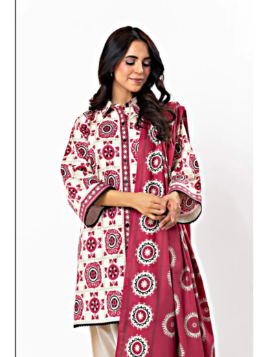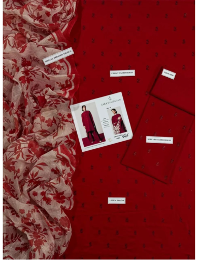 Red Embroidered Women's Lawn Suit 3 Pcs Set