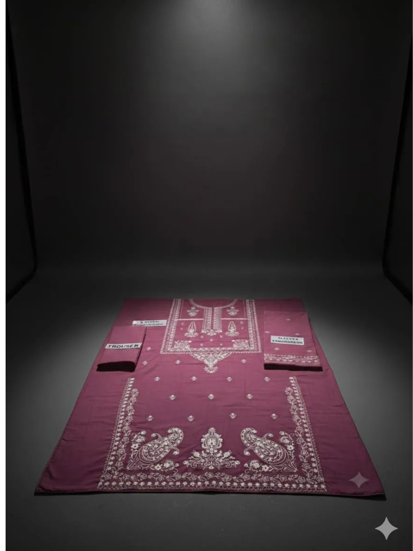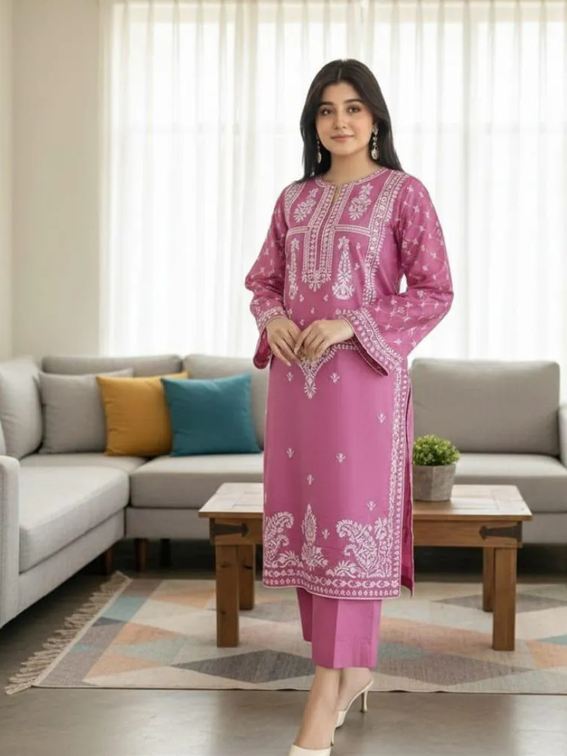 This elegant 2-piece unstitched suit is perfect for weddings, Eid, or any festive occasion in Pakistan. The lilac color and intricate white embroidery make it a stylish choice for both traditional and modern events. Made from premium quality lawn fabric, it offers a comfortable fit while remaining durable enough for daily wear or special celebrations. The shirt features a classic collar and flared sleeves, while the trousers provide a sleek, modern silhouette. The lawn material is breathable and lightweight, making it ideal for summer heat. The embroidery adds a touch of sophistication without overwhelming the design. Whether you’re shopping for yourself or as a gift, this suit delivers both beauty and value. – Premium quality lawn fabric for comfort and durability – Stylish embroidered design with a lilac color that suits all skin tones – Perfect for weddings, Eid, and festive parties – New arrival with best price in Pakistan – Includes 1 shirt and 1 trouser for a complete outfit – Ideal for summer wear and shaadi season events