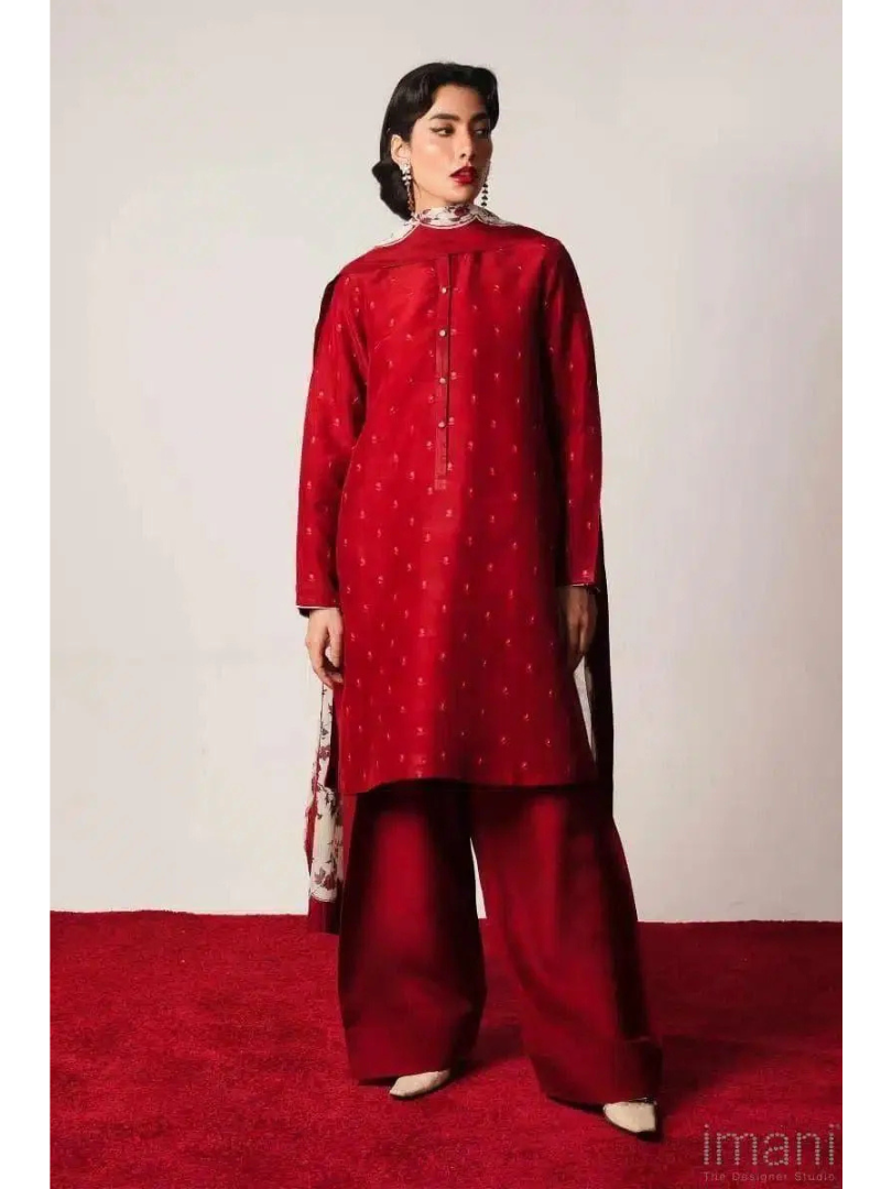 Red Embroidered Women’s Lawn Suit 3 Pcs Set